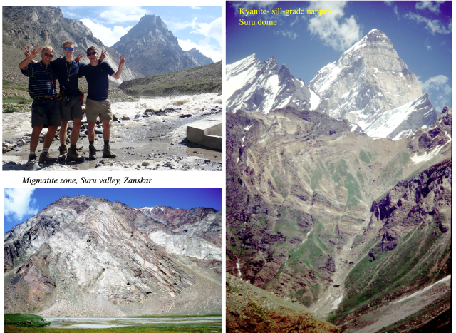 The collision of India with Asia and closing of the intervening NeoTethys ocean at ca 50 Ma resulted in crustal shortening and thickening along the Indian plate margin. Obduction of the Spontang ophiolite onto the north Indian plate margin preceded continental collision. Deformation propagated south (or SW) from the Tethyan Himalaya to the Greater Himalaya with time, culminating in kyanite grade regional metamorphism between ~45-35 Ma, and sillimanite grade regional metamorphism from ~35-12 Ma. At the highest temperatures, partial melting of pelitic gneisses resulted in migmatisation and formation of the classic Himalayan leucogranites with widespread magmatic tourmaline, garnet, biotite, muscovite, and rare andalusite and cordierite-bearing leucogranites. The Zanskar Himalaya has the greatest extent of kyanite grade metamorphism and field mapping along the Suru Valley shows large-scale recumbent folding and deep thrusting.